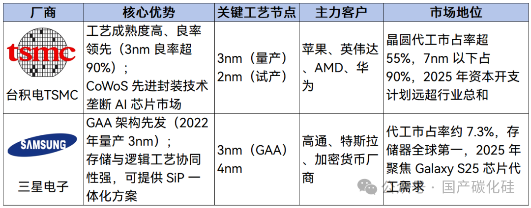 台积电(先进制程龙头)、三星(GAA 架构先行者)、中芯国际(成熟制程主力)。