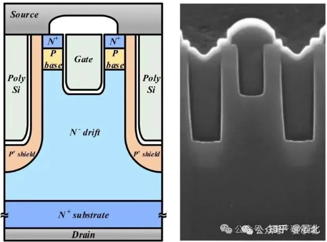 后来三菱等公司对这种结构有诸多研究,它的最大问题在于,槽底的P屏蔽区如何与源极短接?