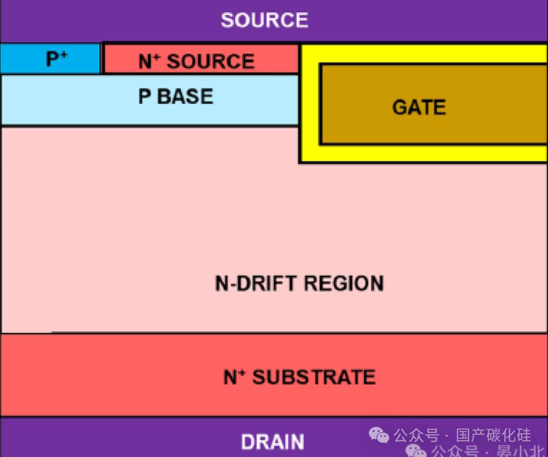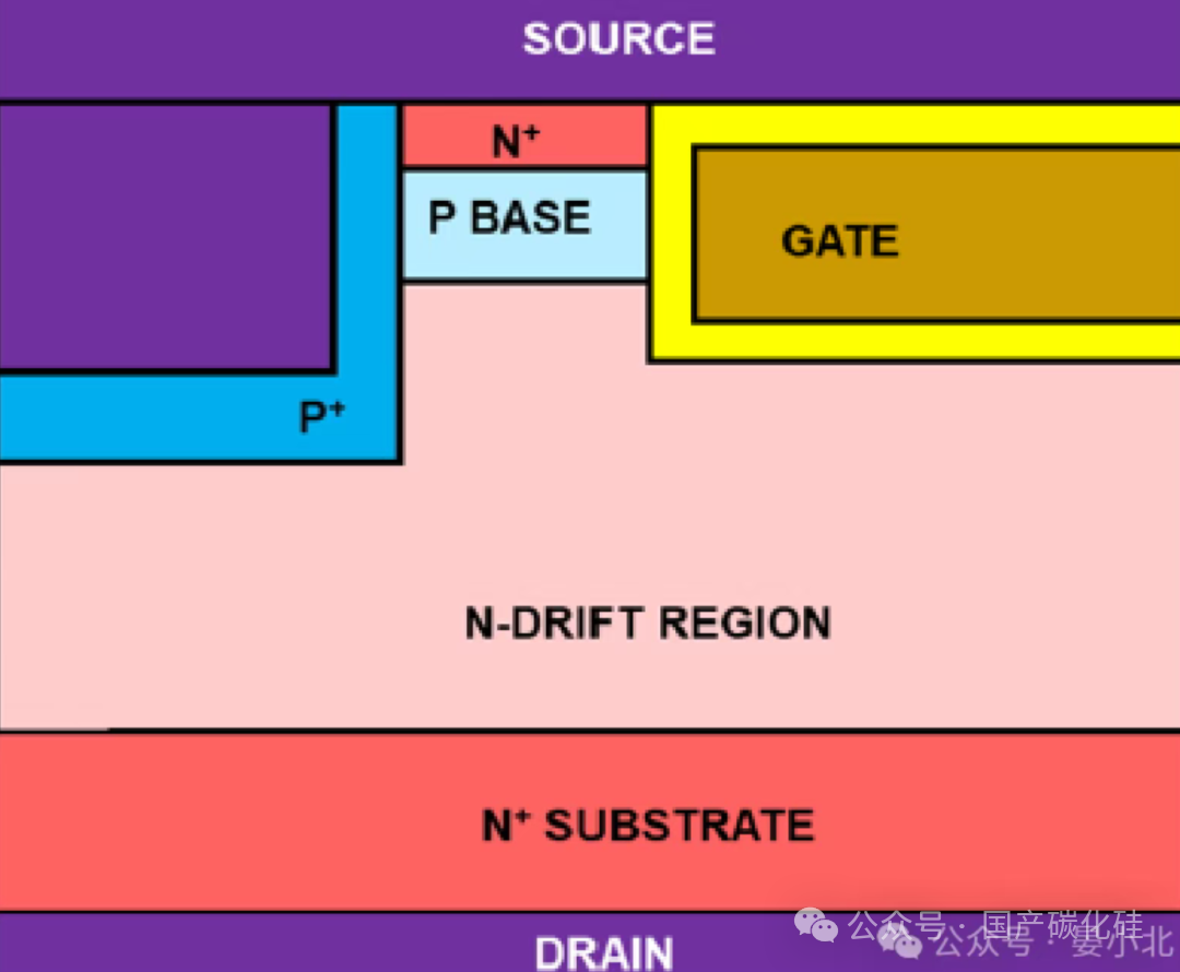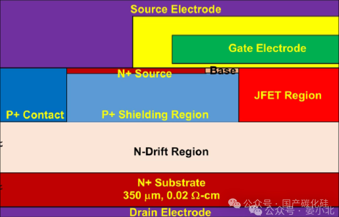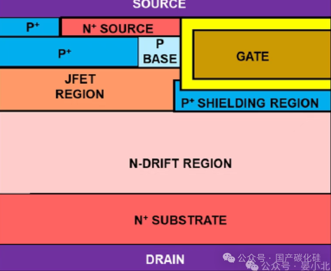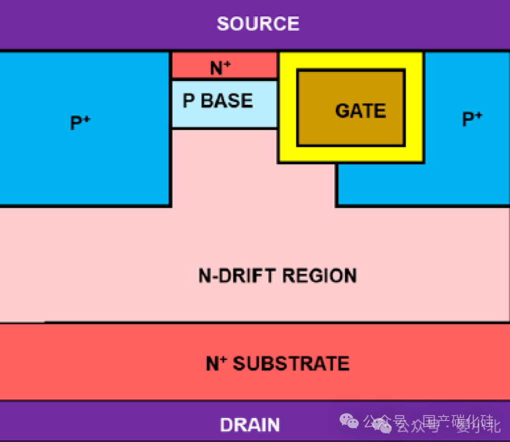 当时SiC材料的离子注入工艺尚不成熟,因此采用外延工艺制备P-base和N+源区,这种结构并不适用于SiC材料,原因有二: